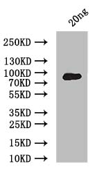 The recombinant ERVK-5 protein (2-667aa) is injected into the rabbit to stimulate an immune response. Over a period of time, the rabbit's immune system generates antibodies against the ERVK-5 protein. Once a sufficient antibody response has been generated in the rabbit, a sample of serum is collected to obtain the polyclonal antibodies. The collected serum containing the polyclonal ERVK-5 antibody is subjected to affinity chromatography. The functionality of the ERVK-5 polyclonal antibody is evaluated in ELISA and WB applications. This ERVK-5 antibody can react specifically with the human ERVK-5 protein.