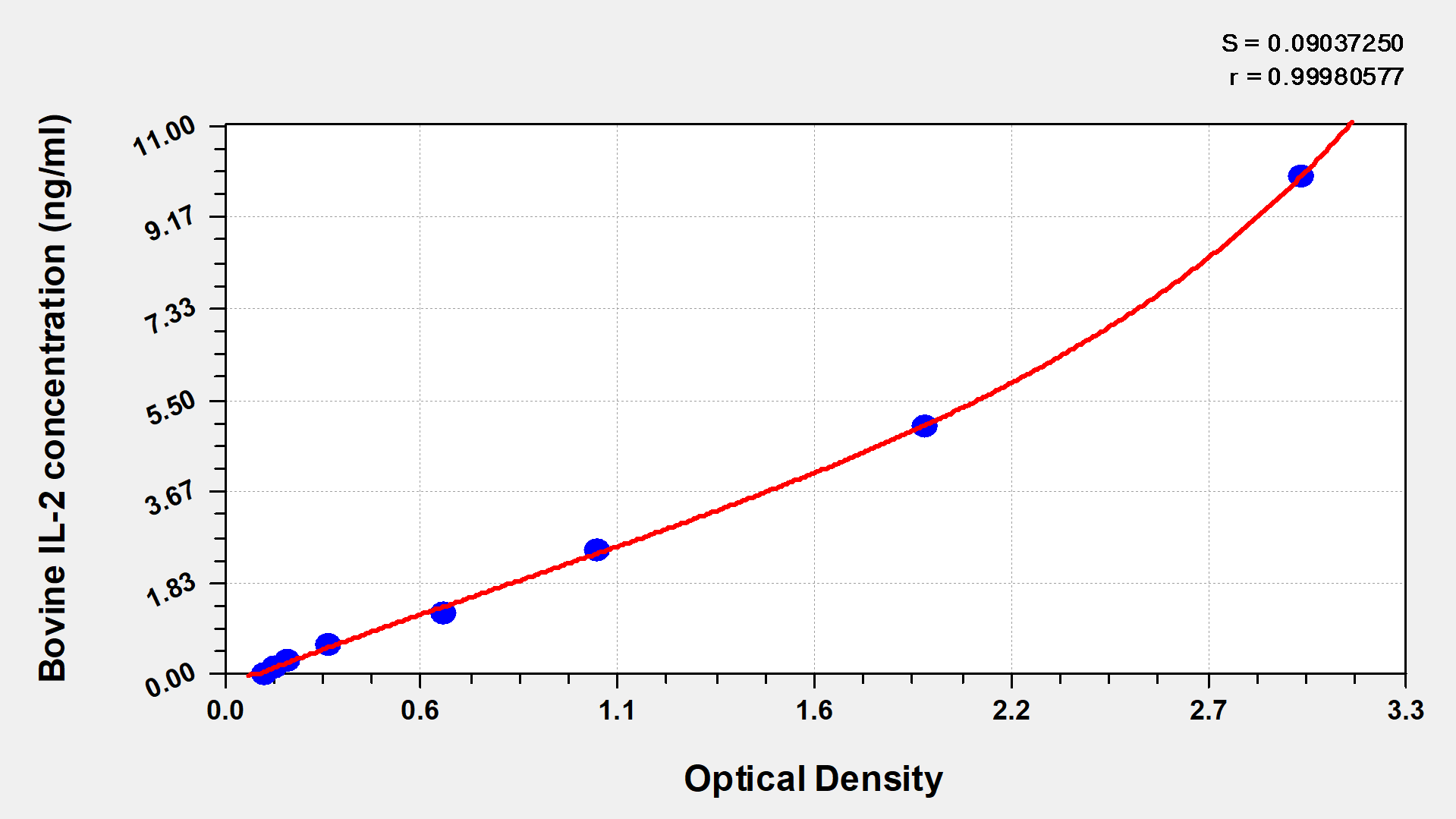 To assess the linearity of the assay, samples were spiked with high concentrations of bovine IL-2 in various matrices and diluted with the Sample Diluent to produce samples with values within the dynamic range of the assay. | ||||||
