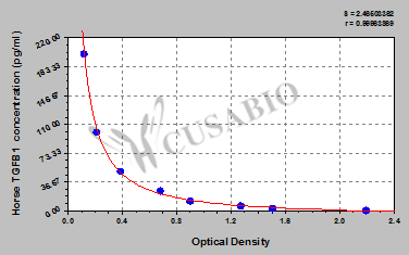 This Horse TGFB1 ELISA Kit was designed for the quantitative measurement of Horse TGFB1 protein in serum, plasma. It is a Competitive ELISA kit, its detection range is 3.12 pg/mL-200 pg/mL and the sensitivity is 1.56 pg/mL.