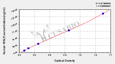 To assess the linearity of the assay, samples were spiked with high concentrations of human INSL5 in various matrices and diluted with the Sample Diluent to produce samples with values within the dynamic range of the assay. |