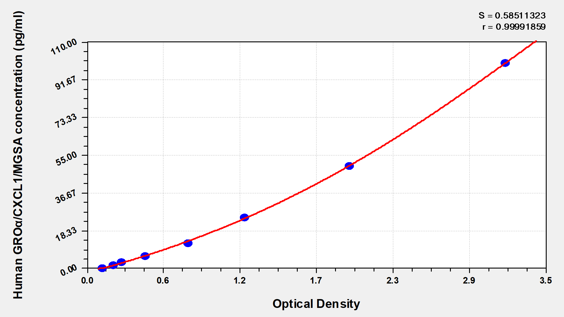 To assess the linearity of the assay, samples were spiked with high concentrations of human GROα/CXCL1/MGSA in various matrices and diluted with the Sample Diluent to produce samples with values within the dynamic range of the assay.