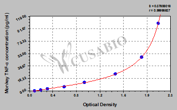 This Monkey TNF ELISA Kit was designed for the quantitative measurement of Monkey TNF protein in serum, plasma, tissue homogenates. It is a Sandwich ELISA kit, its detection range is 1.56 pg/mL-100 pg/mL and the sensitivity is 0.39 pg/mL .