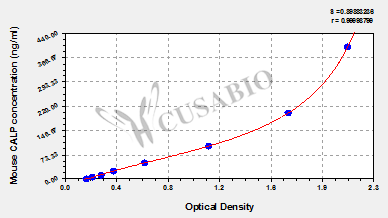 This Mouse CALP ELISA Kit was designed for the quantitative measurement of Mouse CALP protein in serum, plasma, tissue homogenates. It is a Sandwich ELISA kit, its detection range is 6.25 ng/mL-400 ng/mL and the sensitivity is 1.56 ng/mL .