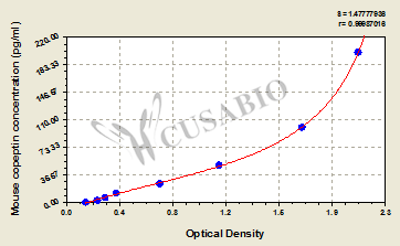 This Mouse copeptin ELISA Kit was designed for the quantitative measurement of Mouse copeptin protein in serum, plasma, tissue homogenates. It is a Sandwich ELISA kit, its detection range is 3.12 pg/mL-200 pg/mL and the sensitivity is 0.78 pg/mL .
