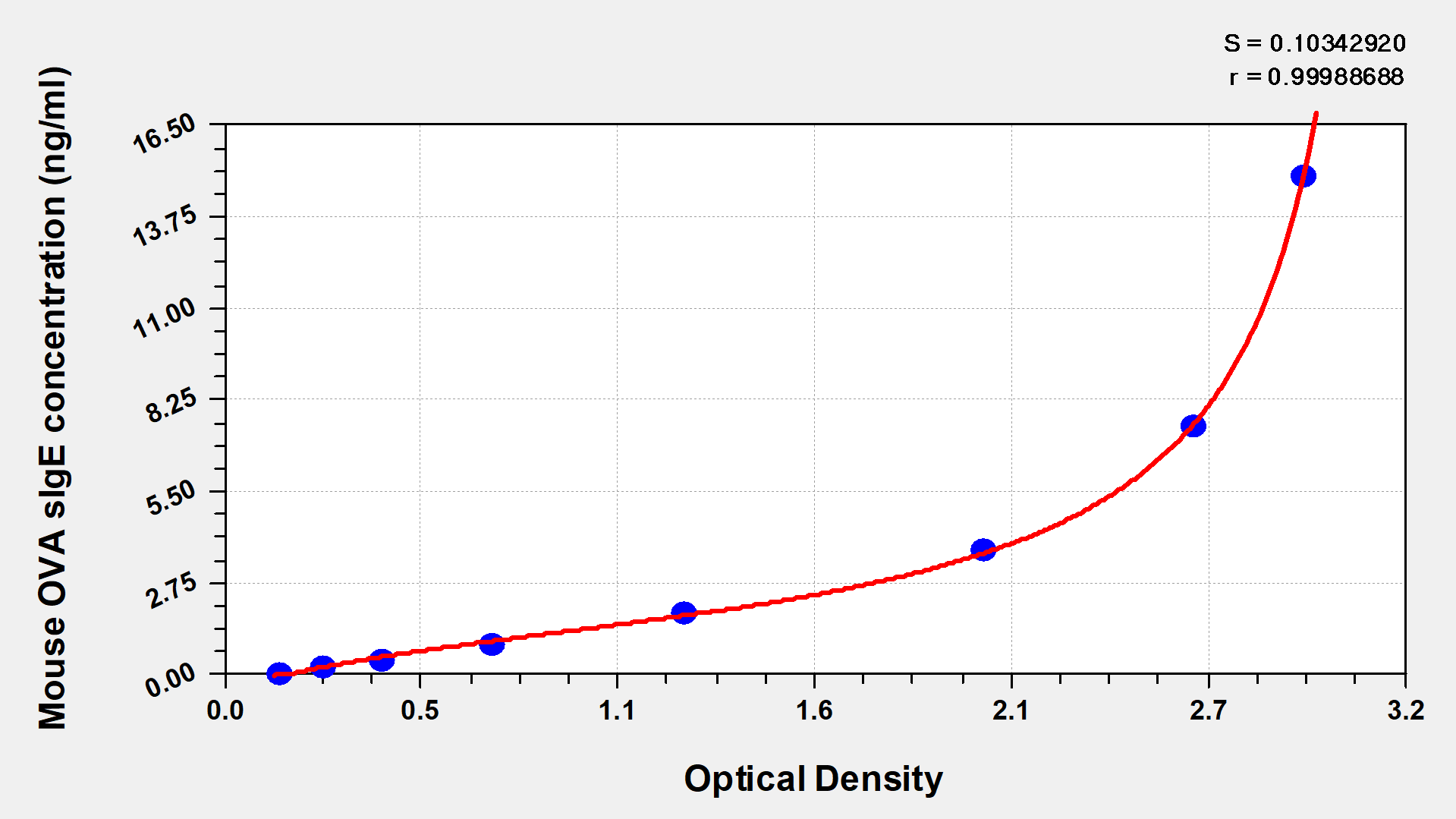 To assess the linearity of the assay, samples were spiked with high concentrations of mouse OVA sIgE in various matrices and diluted with the Sample Diluent to produce samples with values within the dynamic range of the assay. | ||||||
