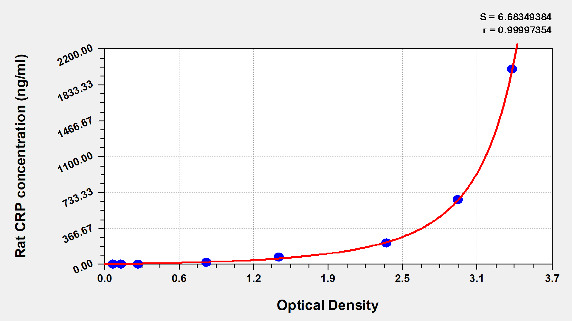 This Rat CRP ELISA Kit was designed for the quantitative measurement of Rat CRP protein in serum, plasma, cell culture supernates, tissue homogenates, cell lysates. It is a Sandwich ELISA kit, its detection range is 2.74 ng/ml-2000 ng/ml and the sensitivity is 2.74ng/ml.