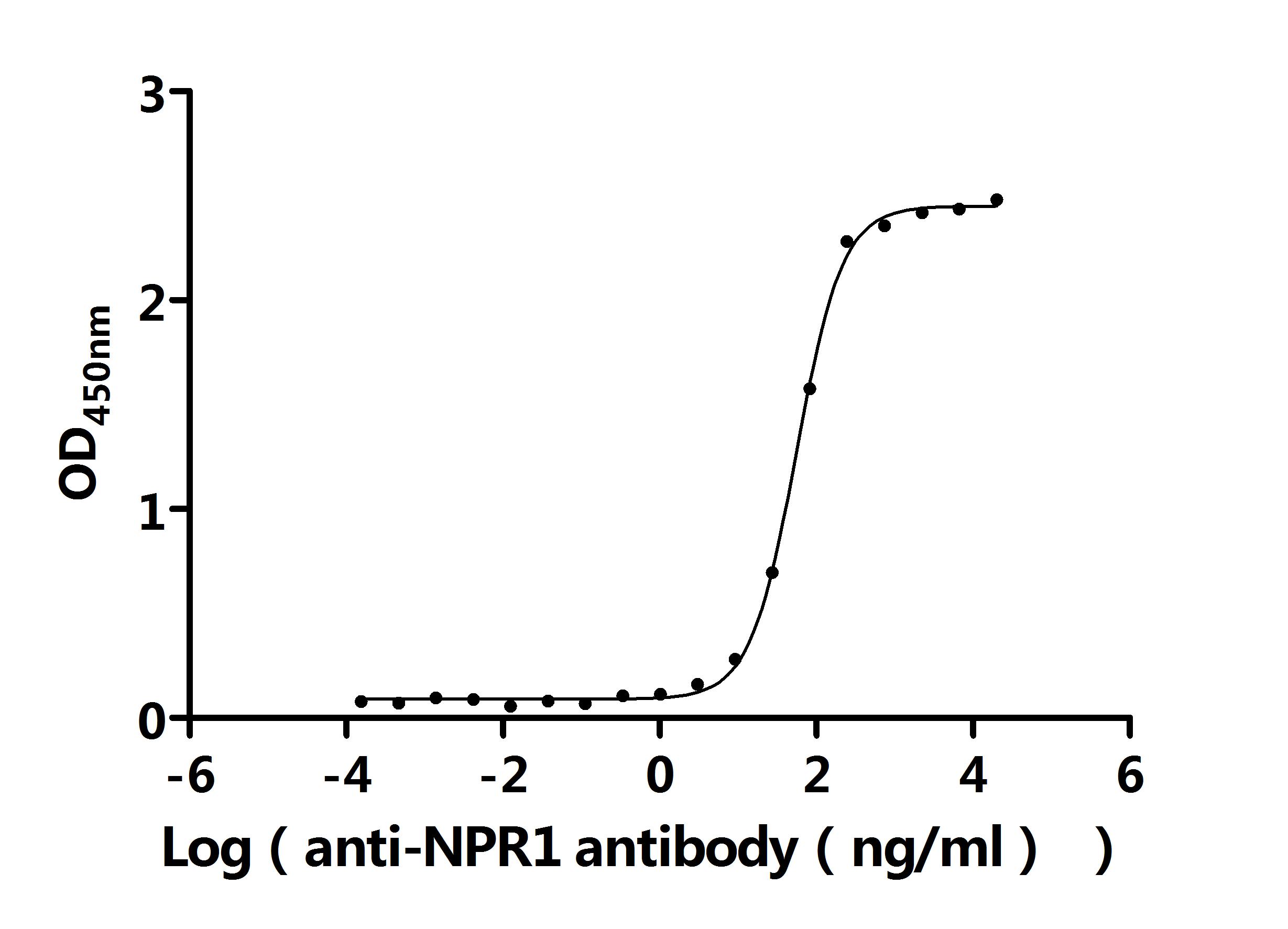 ①Measured by its binding ability in a functional ELISA. Immobilized Macaca fascicularis NPR1 at 2 μg/mL can bind Anti-NPR1 recombinant antibody (CSB-RA016023MA3HU). The EC50 is 50.25-61.60 ng/mL.