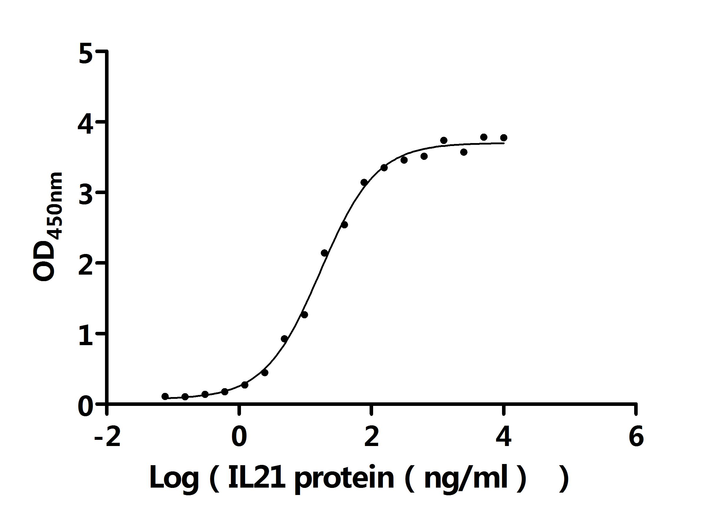 ①Measured by its binding ability in a functional ELISA. Immobilized Macaca fascicularis IL21R at 2 μg/mL can bind Human IL21 (CSB-MP872537HU). The EC50 is 15.01-19.43 ng/mL.