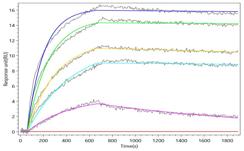 ②Human IL21 (CSB-MP872537HU) captured on Protein A Chip can bind Recombinant Macaca fascicularis IL21R with an affinity constant of 1.31 nM as detected by MetaSPR Assay (WeSPRTM 200).