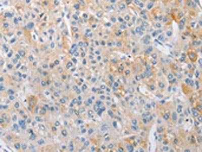 • The image on the left is immunohistochemistry of paraffin-embedded Human liver cancer tissue using CSB-PA706929(APPBP2 Antibody) at dilution 1/25, on the right is treated with fusion protein. (Original magnification: ×200)