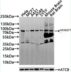 ARHG7 antibody; ARHG7_HUMAN antibody; ARHGEF 7 antibody; Arhgef7 antibody; Beta pix antibody; Beta-Pix antibody; betaPix antibody; betaPix-b antibody; betaPix-c antibody; Cool antibody; COOL-1 antibody; COOL1 antibody; DKFZp686C12170 antibody; DKFZp761K1021 antibody; KIAA0142 antibody; KIAA0412 antibody; mKIAA0142 antibody; Nbla10314 antibody; P50 antibody; P50BP antibody; p85 antibody; P85COOL1 antibody; P85SPR antibody; PAK interacting exchange factor beta antibody; PAK-interacting exchange factor beta antibody; PAK3 antibody; Pak3bp antibody; PIX antibody; PIXB antibody; Rho guanine nucleotide exchange factor (GEF) 7 antibody; Rho guanine nucleotide exchange factor (GEF) 7b antibody; Rho guanine nucleotide exchange factor (GEF7) antibody; Rho guanine nucleotide exchange factor 7 antibody; SH3 domain containing proline rich protein antibody