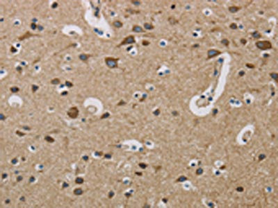 • The image is immunohistochemistry of paraffin-embedded Human brain tissue using CSB-PA877027(COX6B1 Antibody) at dilution 1/50. (Original magnification: ×200)