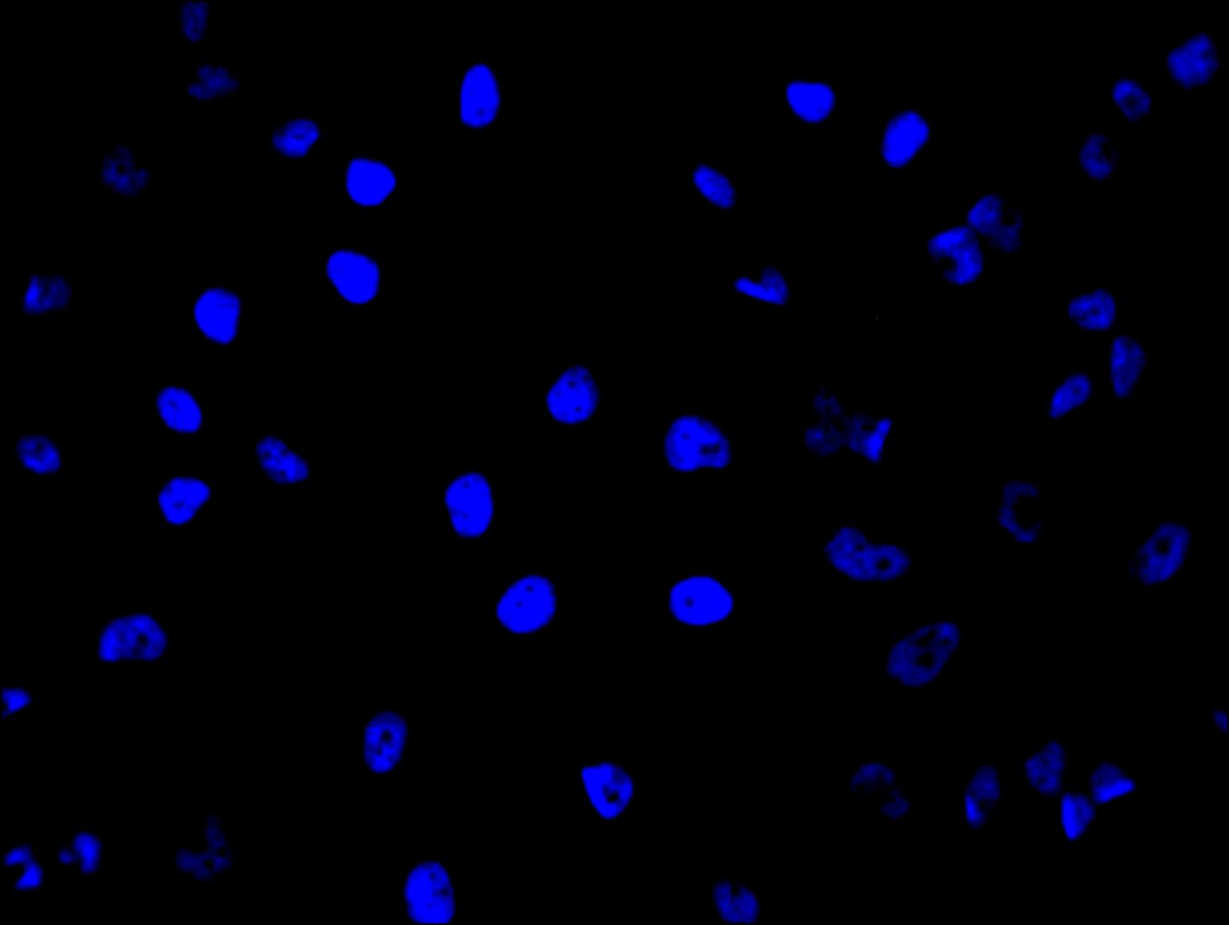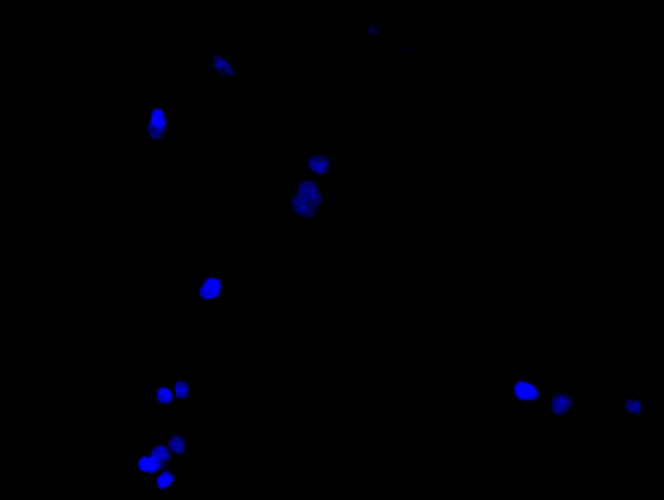 Immunofluorescence staining of HepG2 cell with 5% goat serum, counter-stained with DAPI. The cells were fixed in 4% formaldehyde and blocked in 10% normal Goat Serum. The cells were then incubated with the antibody overnight at 4C. The secondary antibody was Alexa Fluor 488-congugated AffiniPure Goat Anti-Rabbit IgG(H+L).