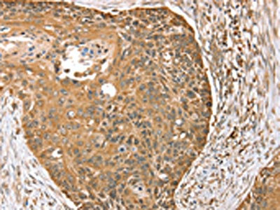 • The image on the left is immunohistochemistry of paraffin-embedded Human esophagus cancer tissue using CSB-PA146109(MORF4L1 Antibody) at dilution 1/35, on the right is treated with synthetic peptide. (Original magnification: ×200)