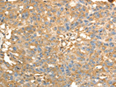 • The image on the left is immunohistochemistry of paraffin-embedded Human liver cancer tissue using CSB-PA212713(PSMD9 Antibody) at dilution 1/40, on the right is treated with fusion protein. (Original magnification: ×200)