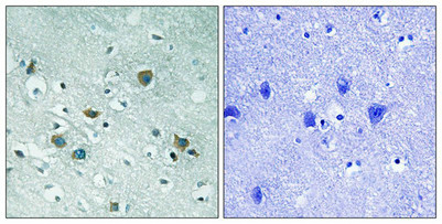 Antibodies were produced by immunizing rabbits with synthetic phosphopeptide and KLH conjugates. Antibodies were purified by affinity-chromatography using epitope-specific phosphopeptide. Non-phospho specific antibodies were removed by chromatogramphy usi