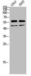 • Western blot analysis of colo 293T lysis using LKB1 antibody.