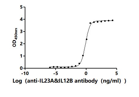 ①Measured by its binding ability in a functional ELISA. Immobilized Human IL23A&IL12B at 2 μg/mL can bind Anti-IL23A&IL12B recombinant antibody (CSB-RA011587MA2HU). The EC50 is 0.7293-0.8610 ng/mL.