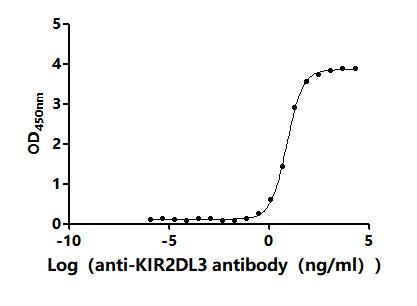 ①Measured by its binding ability in a functional ELISA. Immobilized Human KIR2DL3 at 2 μg/mL can bind Anti-KIR2DL3 recombinant antibody (CSB-RA012352MA1HU). The EC50 is 7.203-8.603 ng/mL.