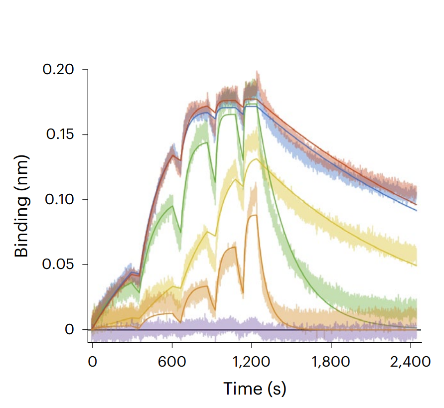 Review: BLI binding traces (associations and dissociations phases) obtained with streptavidin sensors loaded with biotinylated SARS-CoV-2 RBD (d).