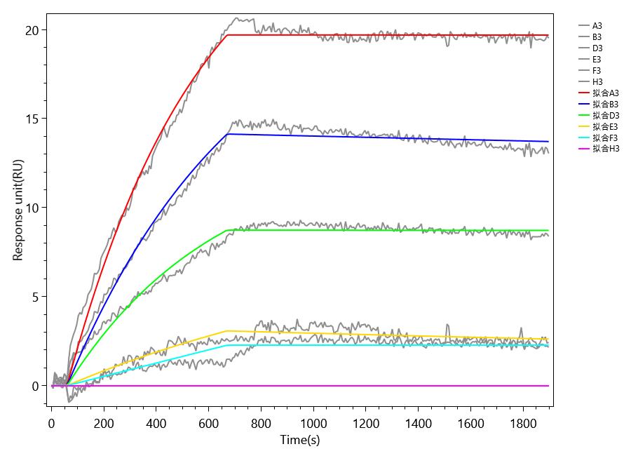 ②Human TGFBR2 captured on Protein A Chip can bind Recombinant Human TGFB3 (CSB-MP023449HU2) with an affinity constant of 1.92 nM as detected by MetaSPR Assay (WeSPRTM 200).