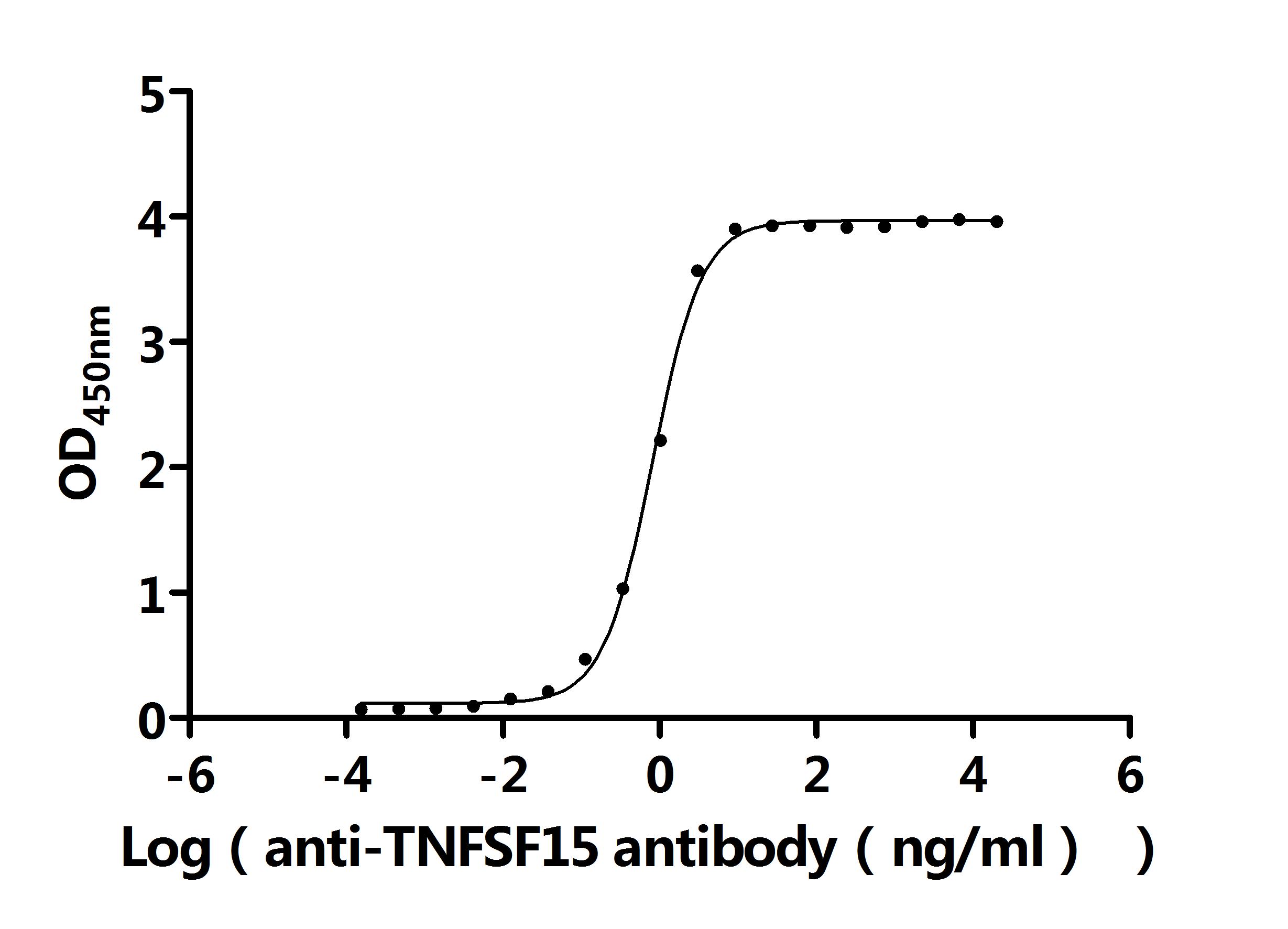 Measured by its binding ability in a functional ELISA. Immobilized Human TNFSF15 at 2 μg/mL can bind Anti-TNFSF15 recombinant antibody (CSB-RA023992MA1HU). The EC50 is 0.7563-0.8726 ng/mL.