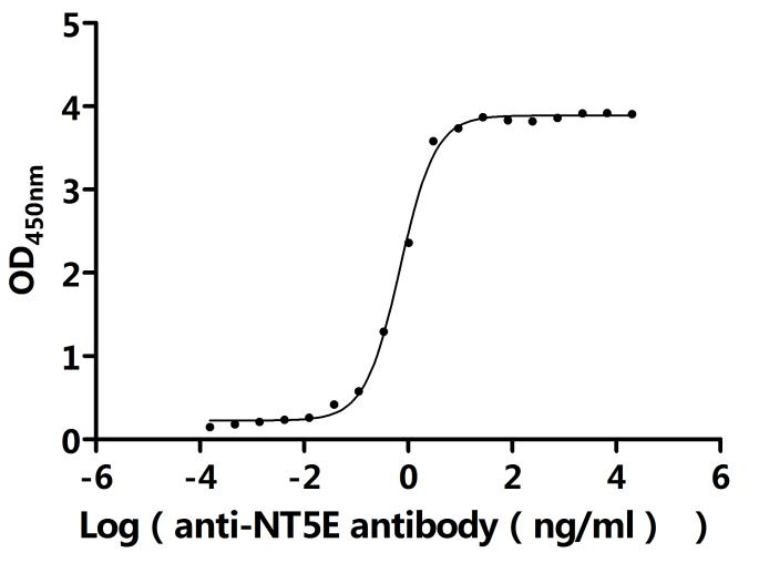 ①Measured by its binding ability in a functional ELISA.Immobilized Macaca fascicularis NT5E at 2 μg/mL can bind anti-NT5E recombinant antibody(CSB-RA723415MA1HU).The EC50 is 0.6454-0.7583 ng/mL.
