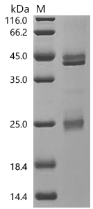 ①Measured by its binding ability in a functional ELISA.Immobilized Macaca fascicularis IL23A&IL12B at 2 μg/mL can bind anti-IL23A&IL12B recombinant antibody(CSB-RA011587MA2HU).The EC50 is 0.7723-0.9250 ng/mL.