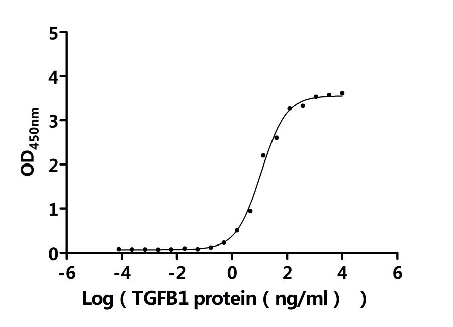 ①Measured by its binding ability in a functional ELISA. Immobilized Macaca fascicularis ITGAV&ITGB6 at 2 μg/mL can bind Macaca mulatta TGFB1 (CSB-MP6752MOW(A4)(M)). The EC50 is 8.899-14.82 ng/mL.