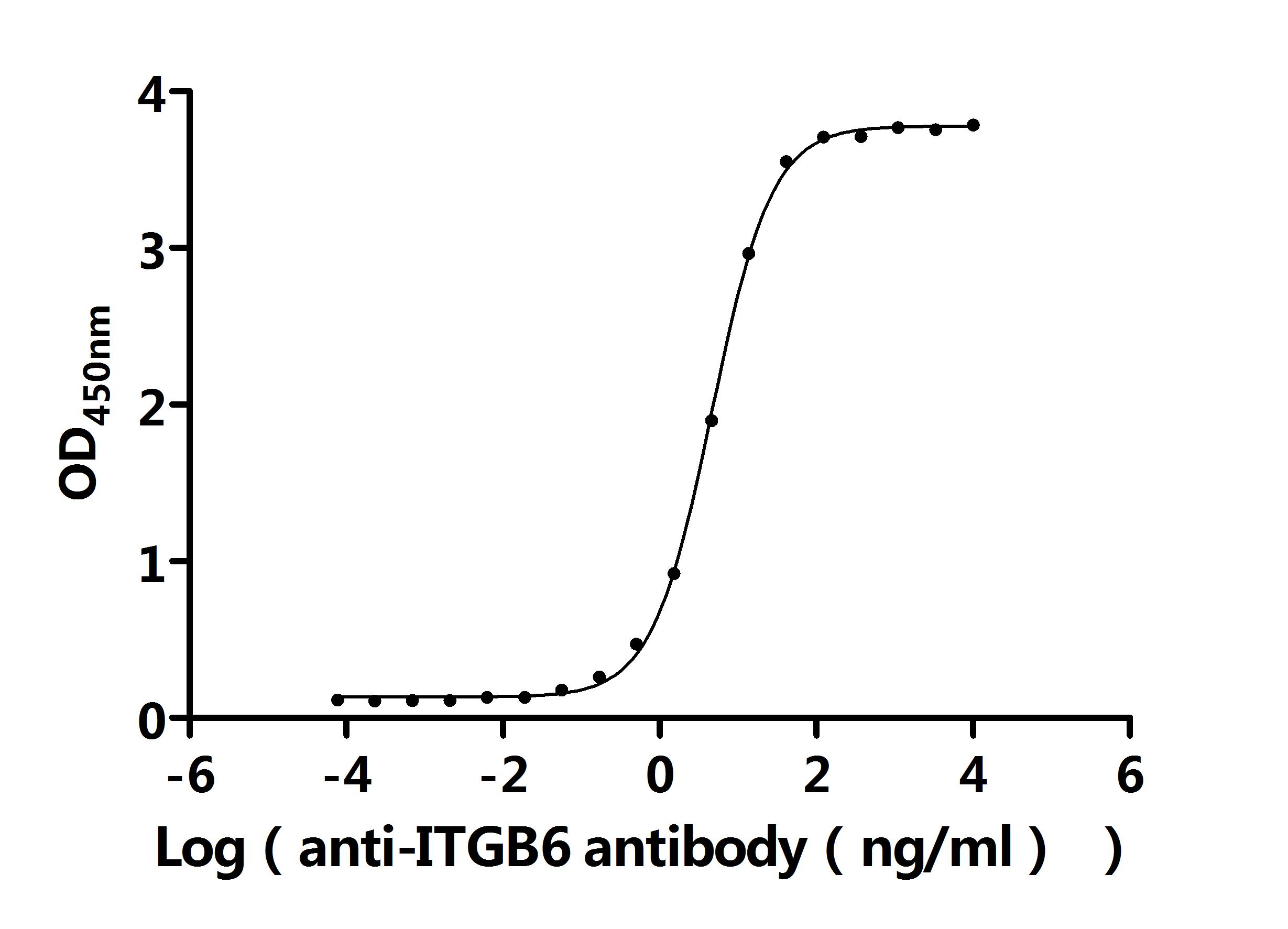 ②Measured by its binding ability in a functional ELISA. Immobilized Macaca fascicularis ITGAV&ITGB6 at 2 μg/mL can bind Anti-ITGB6 recombinant antibody(CSB-RA011890MA1HU). The EC50 is 4.251-5.103 ng/mL.