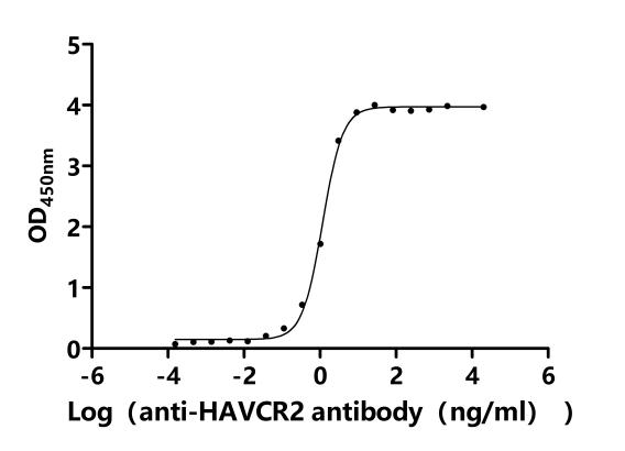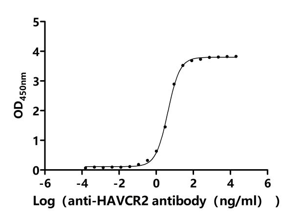 ②Measured by its binding ability in a functional ELISA.Immobilized Macaca fascicularis HAVCR2 at 2 μg/mL can bind Anti-HAVCR2 recombinant antibody (CSB-RA010145MA2HU). The EC50 is 4.000-4.556 ng/mL.