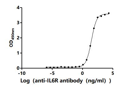 ①Measured by its binding ability in a functional ELISA. Immobilized Macaca fascicularis IL6R at 2 μg/mL can bind Anti-IL6R recombinant antibody (CSB-RA011665MA1HU). The EC50 is 26.59-31.72 ng/mL.