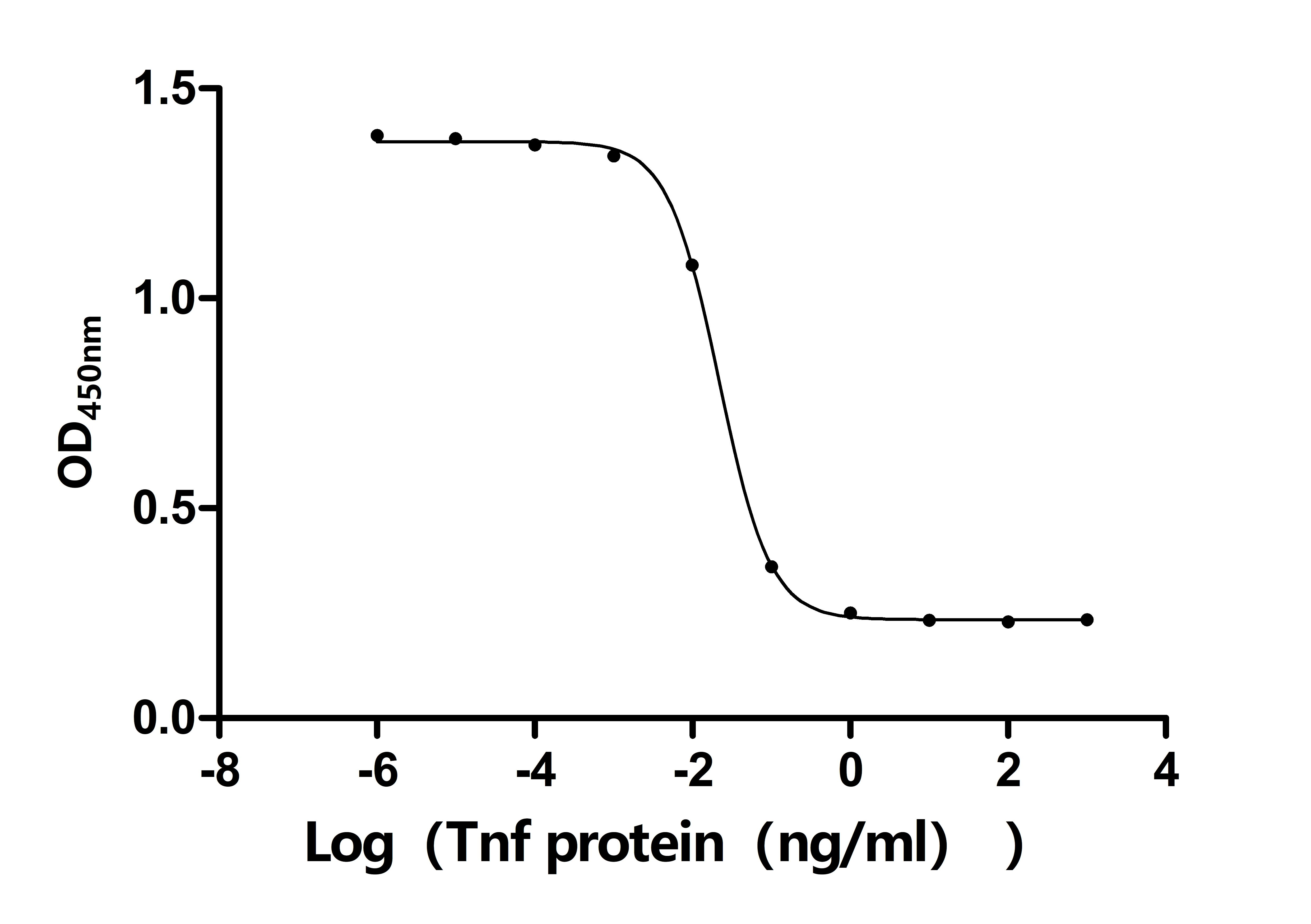 Measured in a cytotoxicity assay using L-929 mouse fibroblast cells in the presence of the metabolic inhibitor actinomycin D. The ED50 for this effect is 17.58-26.84 pg/mL.