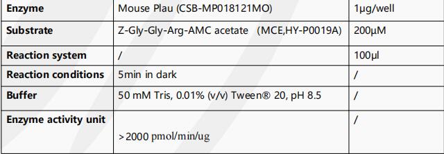 Fully active measured by its ability to cleave a peptide substrate, N-carbobenzyloxy-Gly-Gly-Arg-7-amido-4-methylcoumarin (Z-GGR-AMC). Plau needs to be activated by Plasmin to be enzymatically active. The specific activity is above 2000 pmol/min/ug.