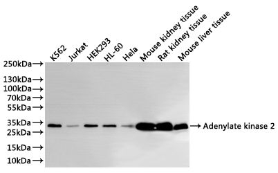 All lanes: Adenylate kinase 2 antibody at 1:1000