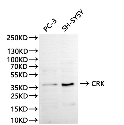 Adapter molecule crk antibody; Avian sarcoma virus CT10 (v crk) oncogene homolog antibody; CRK antibody; CRK isoform 2 antibody; CRK isoform II antibody; CRK_HUMAN antibody; CRKII antibody; FLJ38130 antibody; OTTHUMP00000115366 antibody; OTTHUMP00000198330 antibody; p38 antibody; Proto oncogene C crk antibody; Proto-oncogene C-crk antibody; v crk avian sarcoma virus CT10 oncogene homolog antibody; v crk sarcoma virus CT10 oncogene homolog antibody; v crk sarcoma virus CT10 oncogene homolog (avian) antibody