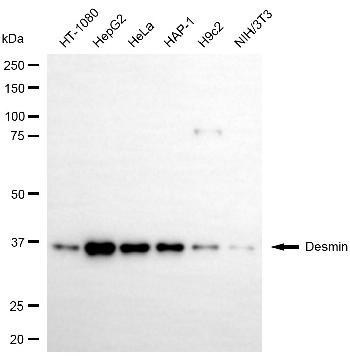 Muscle-specific type III intermediate filament essential for proper muscular structure and function. Plays a crucial role in maintaining the structure of sarcomeres, inter-connecting the Z-disks and forming the myofibrils, linking them not only to the sarcolemmal cytoskeleton, but also to the nucleus and mitochondria, thus providing strength for the muscle fiber during activity. In adult striated muscle they form a fibrous network connecting myofibrils to each other and to the plasma membrane from the periphery of the Z-line structures. May act as a sarcomeric microtubule-anchoring protein: specifically associates with detyrosinated tubulin-alpha chains, leading to buckled microtubules and mechanical resistance to contraction. Contributes to the transcriptional regulation of the NKX2-5 gene in cardiac progenitor cells during a short period of cardiomyogenesis and in cardiac side population stem cells in the adult. Plays a role in maintaining an optimal conformation of nebulette (NEB) on heart muscle sarcomeres to bind and recruit cardiac alpha-actin.