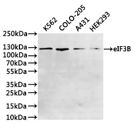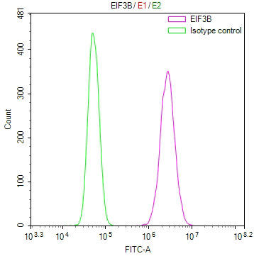 RNA-binding component of the eukaryotic translation initiation factor 3 (eIF-3) complex, which is required for several steps in the initiation of protein synthesis. The eIF-3 complex associates with the 40S ribosome and facilitates the recruitment of eIF-1, eIF-1A, eIF-2:GTP:methionyl-tRNAi and eIF-5 to form the 43S pre-initiation complex (43S PIC). The eIF-3 complex stimulates mRNA recruitment to the 43S PIC and scanning of the mRNA for AUG recognition. The eIF-3 complex is also required for disassembly and recycling of post-termination ribosomal complexes and subsequently prevents premature joining of the 40S and 60S ribosomal subunits prior to initiation. The eIF-3 complex specifically targets and initiates translation of a subset of mRNAs involved in cell proliferation, including cell cycling, differentiation and apoptosis, and uses different modes of RNA stem-loop binding to exert either translational activation or repression.; (Microbial infection) In case of FCV infection, plays a role in the ribosomal termination-reinitiation event leading to the translation of VP2.