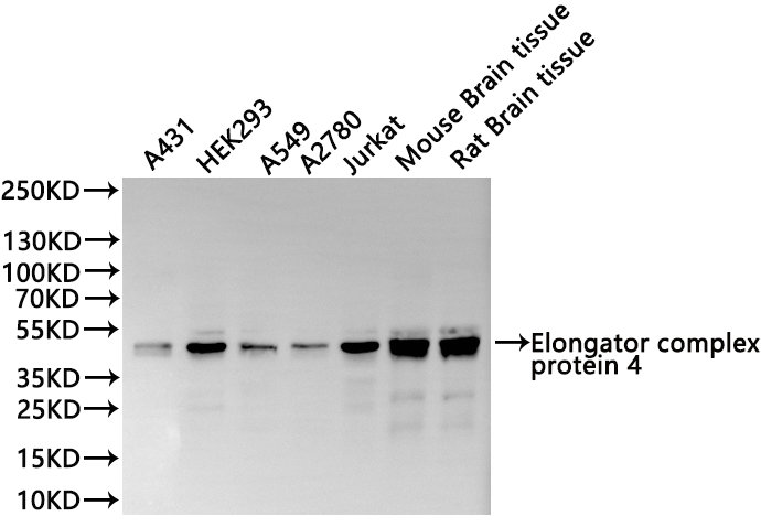 C11orf19 antibody; dJ68P15A.1 antibody; elongation protein 4 homolog (S. cerevisiae) antibody; Elongation protein 4 homolog antibody; Elongator complex protein 4 antibody; ELP4 antibody; ELP4_HUMAN antibody; FLJ20498 antibody; hELP4 antibody; PAX6 neighbor gene protein antibody; PAX6NEB antibody; PAXNEB antibody