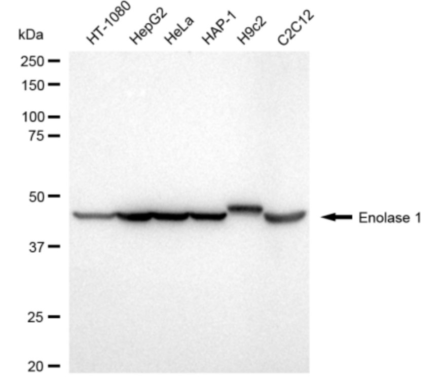ENO1; Enolase 1; Alpha-Enolase; ENO1L1; MBP-1; MPB1; PPH; ENO1 Intronic Transcript 1 (Non-Protein Coding); 2-Phospho-D-Glycerate Hydro-Lyase; Plasminogen-Binding Protein; ENO1 Intronic Transcript 1; Phosphopyruvate Hydratase; Enolase 1, (Alpha); Non-Neural Enolase; EC 4.2.1.11; ENO1-IT1; NNE; Epididymis Secretory Protein Li 17; C-Myc Promoter-Binding Protein-1; MYC Promoter-Binding Protein 1; C-Myc Promoter-Binding Protein; Alpha Enolase Like 1; Tau-Crystallin; Enolase-Alpha; HEL-S-17; EC 4.2.1; MBPB1; MPB-1