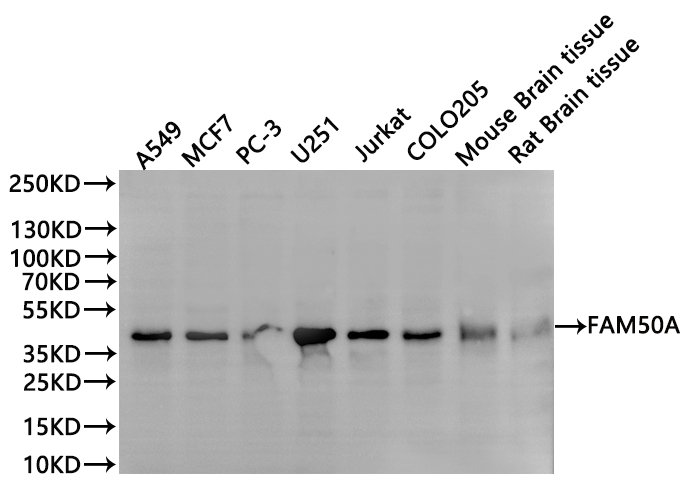 9F antibody; DXS9928E antibody; FA50A_HUMAN antibody; FAM 50A antibody; fam50a antibody; Family with sequence similarity 50 member A antibody; HXC 26 antibody; HXC26 antibody; OTTHUMP00000061460 antibody; Protein FAM50A antibody; Protein HXC 26 antibody; Protein HXC-26 antibody; Protein HXC26 antibody; Protein XAP 5 antibody; Protein XAP-5 antibody; Protein XAP5 antibody; XAP 5 antibody; XAP 5 protein antibody; XAP5 antibody; XAP5 gene antibody; XAP5 protein antibody