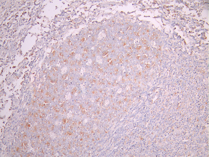 • IHC image of CSB-RA270243A0HU diluted at 1:100 and staining in paraffin-embedded human tonsil tissue performed on a Leica BondTM system. After dewaxing and hydration, antigen retrieval was mediated by high pressure in a citrate buffer (pH 6.0). Section was blocked with 10% normal goat serum 30min at RT. Then primary antibody (1% BSA) was incubated at 4°C overnight. The primary is detected by a Goat anti-rabbit polymer IgG labeled by HRP and visualized using 0.05% DAB.