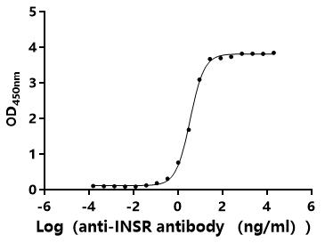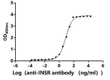 Activity: Measured by its binding ability in a functional ELISA.Immobilized Human INSR(CSB-MP011753HU(F2)) at 2 μg/mL can bind Anti-INSR recombinant antibody.The EC50 is 3.216-3.830 ng/mL.