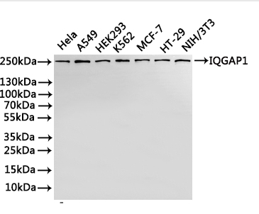 Positive WB detected in: Hela whole cell lysate(30µg), A549 whole cell lysate(30µg), HEK293 whole cell lysate(30µg), K562 whole cell lysate(30µg), MCF-7 whole cell lysate(30µg), HT-29 whole cell lysate(30µg), NIH/3T3 whole cell lysate(30µg)