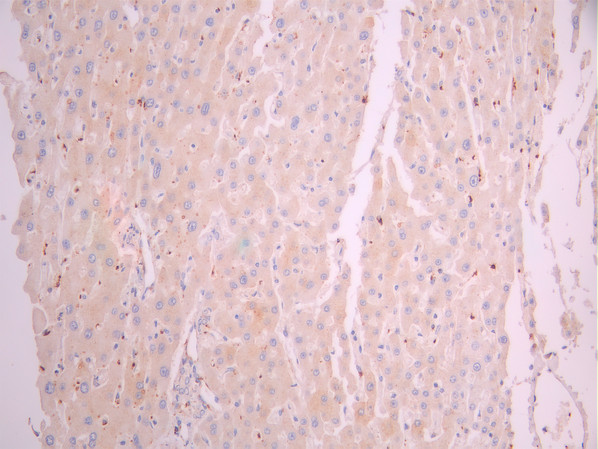 • IHC image of CSB-RA030958A0HU diluted at 1:100 and staining in paraffin-embedded human liver cancer performed on a Leica BondTM system. After dewaxing and hydration, antigen retrieval was mediated by high pressure in a citrate buffer (pH 6.0). Section was blocked with 10% normal goat serum 30min at RT. Then primary antibody (1% BSA) was incubated at 4°C overnight. The primary is detected by a Goat anti-rabbit polymer IgG labeled by HRP and visualized using 0.05% DAB.