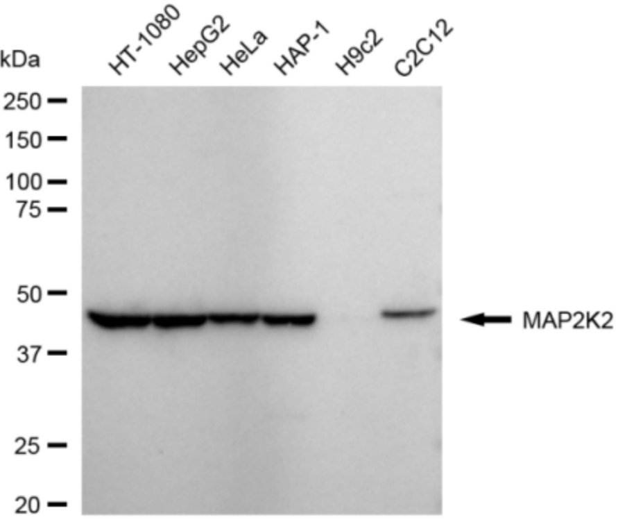 MAP2K2; Mitogen-Activated Protein Kinase Kinase 2; MEK2; MAP Kinase Kinase 2; PRKMK2; MKK2; Dual Specificity Mitogen-Activated Protein Kinase Kinase 2; ERK Activator Kinase 2; MAPK/ERK Kinase 2; EC 2.7.12.2; Mitogen-Activated Protein Kinase Kinase 2, P45; MAPKK 2; MAPKK2; MEK 2; CFC4