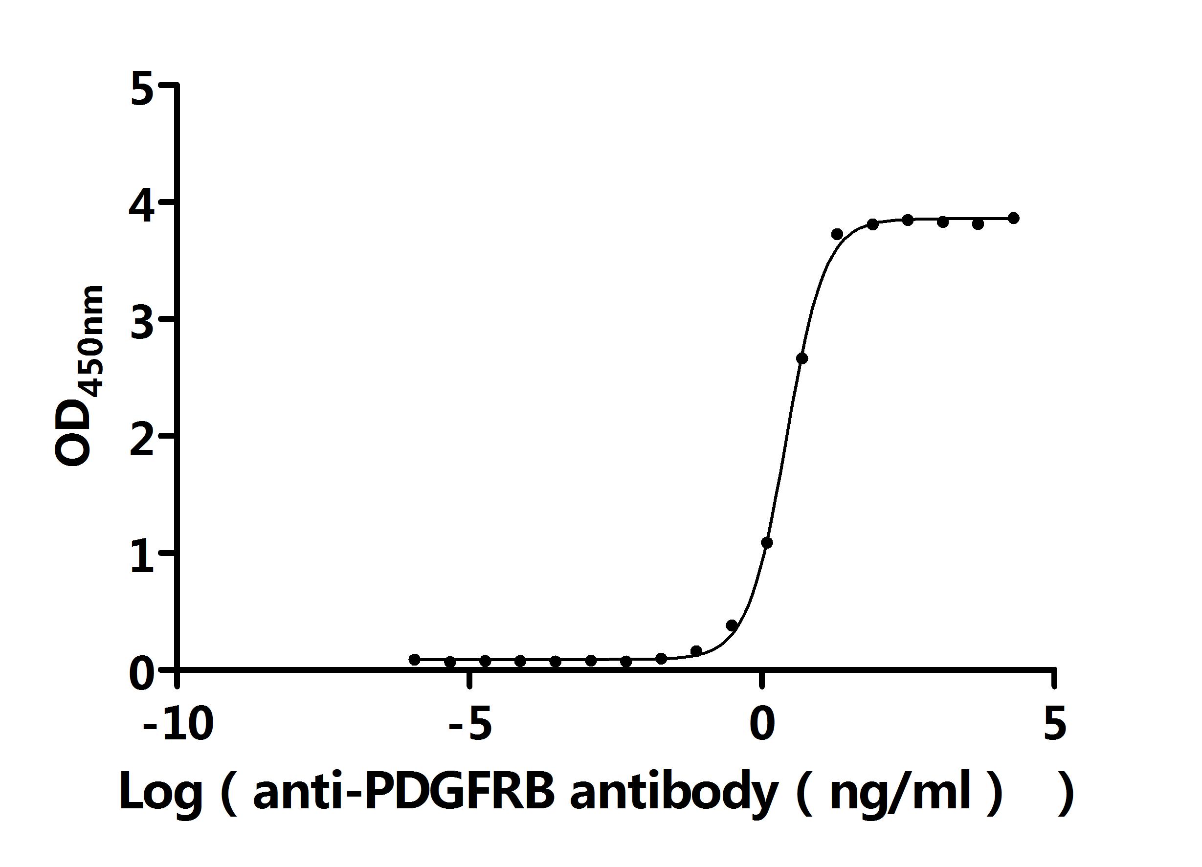 Tyrosine-protein kinase that acts as cell-surface receptor for homodimeric PDGFB and PDGFD and for heterodimers formed by PDGFA and PDGFB, and plays an essential role in the regulation of embryonic development, cell proliferation, survival, differentiation, chemotaxis and migration. Plays an essential role in blood vessel development by promoting proliferation, migration and recruitment of pericytes and smooth muscle cells to endothelial cells. Plays a role in the migration of vascular smooth muscle cells and the formation of neointima at vascular injury sites. Required for normal development of the cardiovascular system. Required for normal recruitment of pericytes (mesangial cells) in the kidney glomerulus, and for normal formation of a branched network of capillaries in kidney glomeruli. Promotes rearrangement of the actin cytoskeleton and the formation of membrane ruffles. Binding of its cognate ligands - homodimeric PDGFB, heterodimers formed by PDGFA and PDGFB or homodimeric PDGFD -leads to the activation of several signaling cascades; the response depends on the nature of the bound ligand and is modulated by the formation of heterodimers between PDGFRA and PDGFRB. Phosphorylates PLCG1, PIK3R1, PTPN11, RASA1/GAP, CBL, SHC1 and NCK1. Activation of PLCG1 leads to the production of the cellular signaling molecules diacylglycerol and inositol 1,4,5-trisphosphate, mobilization of cytosolic Ca(2+) and the activation of protein kinase C. Phosphorylation of PIK3R1, the regulatory subunit of phosphatidylinositol 3-kinase, leads to the activation of the AKT1 signaling pathway. Phosphorylation of SHC1, or of the C-terminus of PTPN11, creates a binding site for GRB2, resulting in the activation of HRAS, RAF1 and down-stream MAP kinases, including MAPK1/ERK2 and/or MAPK3/ERK1. Promotes phosphorylation and activation of SRC family kinases. Promotes phosphorylation of PDCD6IP/ALIX and STAM. Receptor signaling is down-regulated by protein phosphatases that dephosphorylate the receptor and its down-stream effectors, and by rapid internalization of the activated receptor.