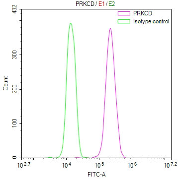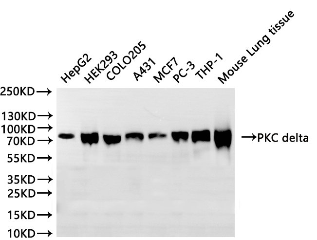 Calcium-independent, phospholipid- and diacylglycerol (DAG)-dependent serine/threonine-protein kinase that plays contrasting roles in cell death and cell survival by functioning as a pro-apoptotic protein during DNA damage-induced apoptosis, but acting as an anti-apoptotic protein during cytokine receptor-initiated cell death, is involved in tumor suppression as well as survival of several cancers, is required for oxygen radical production by NADPH oxidase and acts as positive or negative regulator in platelet functional responses. Negatively regulates B cell proliferation and also has an important function in self-antigen induced B cell tolerance induction. Upon DNA damage, activates the promoter of the death-promoting transcription factor BCLAF1/Btf to trigger BCLAF1-mediated p53/TP53 gene transcription and apoptosis. In response to oxidative stress, interact with and activate CHUK/IKKA in the nucleus, causing the phosphorylation of p53/TP53. In the case of ER stress or DNA damage-induced apoptosis, can form a complex with the tyrosine-protein kinase ABL1 which trigger apoptosis independently of p53/TP53. In cytosol can trigger apoptosis by activating MAPK11 or MAPK14, inhibiting AKT1 and decreasing the level of X-linked inhibitor of apoptosis protein (XIAP), whereas in nucleus induces apoptosis via the activation of MAPK8 or MAPK9. Upon ionizing radiation treatment, is required for the activation of the apoptosis regulators BAX and BAK, which trigger the mitochondrial cell death pathway. Can phosphorylate MCL1 and target it for degradation which is sufficient to trigger for BAX activation and apoptosis. Is required for the control of cell cycle progression both at G1/S and G2/M phases. Mediates phorbol 12-myristate 13-acetate (PMA)-induced inhibition of cell cycle progression at G1/S phase by up-regulating the CDK inhibitor CDKN1A/p21 and inhibiting the cyclin CCNA2 promoter activity. In response to UV irradiation can phosphorylate CDK1, which is important for the G2/M DNA damage checkpoint activation. Can protect glioma cells from the apoptosis induced by TNFSF10/TRAIL, probably by inducing increased phosphorylation and subsequent activation of AKT1. Is highly expressed in a number of cancer cells and promotes cell survival and resistance against chemotherapeutic drugs by inducing cyclin D1 (CCND1) and hyperphosphorylation of RB1, and via several pro-survival pathways, including NF-kappa-B, AKT1 and MAPK1/3 (ERK1/2). Involved in antifungal immunity by mediating phosphorylation and activation of CARD9 downstream of C-type lectin receptors activation, promoting interaction between CARD9 and BCL10, followed by activation of NF-kappa-B and MAP kinase p38 pathways. Can also act as tumor suppressor upon mitogenic stimulation with PMA or TPA. In N-formyl-methionyl-leucyl-phenylalanine (fMLP)-treated cells, is required for NCF1 (p47-phox) phosphorylation and activation of NADPH oxidase activity, and regulates TNF-elicited superoxide anion production in neutrophils, by direct phosphorylation and activation of NCF1 or indirectly through MAPK1/3 (ERK1/2) signaling pathways. May also play a role in the regulation of NADPH oxidase activity in eosinophil after stimulation with IL5, leukotriene B4 or PMA. In collagen-induced platelet aggregation, acts a negative regulator of filopodia formation and actin polymerization by interacting with and negatively regulating VASP phosphorylation. Downstream of PAR1, PAR4 and CD36/GP4 receptors, regulates differentially platelet dense granule secretion; acts as a positive regulator in PAR-mediated granule secretion, whereas it negatively regulates CD36/GP4-mediated granule release. Phosphorylates MUC1 in the C-terminal and regulates the interaction between MUC1 and beta-catenin. The catalytic subunit phosphorylates 14-3-3 proteins (YWHAB, YWHAZ and YWHAH) in a sphingosine-dependent fashion. Phosphorylates ELAVL1 in response to angiotensin-2 treatment. Phosphorylates mitochondrial phospolipid scramblase 3 (PLSCR3), resulting in increased cardiolipin expression on the mitochondrial outer membrane which facilitates apoptosis. Phosphorylates SMPD1 which induces SMPD1 secretion.