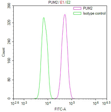 Sequence-specific RNA-binding protein that acts as a post-transcriptional repressor by binding the 3'-UTR of mRNA targets. Binds to an RNA consensus sequence, the Pumilio Response Element (PRE), 5'-UGUANAUA-3', that is related to the Nanos Response Element (NRE) (, PubMed:21397187). Mediates post-transcriptional repression of transcripts via different mechanisms: acts via direct recruitment of the CCR4-POP2-NOT deadenylase leading to translational inhibition and mRNA degradation. Also mediates deadenylation-independent repression by promoting accessibility of miRNAs. Acts as a post-transcriptional repressor of E2F3 mRNAs by binding to its 3'-UTR and facilitating miRNA regulation. Plays a role in cytoplasmic sensing of viral infection. Represses a program of genes necessary to maintain genomic stability such as key mitotic, DNA repair and DNA replication factors. Its ability to repress those target mRNAs is regulated by the lncRNA NORAD (non-coding RNA activated by DNA damage) which, due to its high abundance and multitude of PUMILIO binding sites, is able to sequester a significant fraction of PUM1 and PUM2 in the cytoplasm. May regulate DCUN1D3 mRNA levels. May support proliferation and self-renewal of stem cells. Binds specifically to miRNA MIR199A precursor, with PUM1, regulates miRNA MIR199A expression at a postranscriptional level.