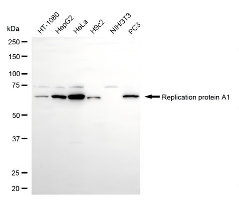 As part of the heterotrimeric replication protein A complex (RPA/RP-A), binds and stabilizes single-stranded DNA intermediates, that form during DNA replication or upon DNA stress. It prevents their reannealing and in parallel, recruits and activates different proteins and complexes involved in DNA metabolism. Thereby, it plays an essential role both in DNA replication and the cellular response to DNA damage. In the cellular response to DNA damage, the RPA complex controls DNA repair and DNA damage checkpoint activation. Through recruitment of ATRIP activates the ATR kinase a master regulator of the DNA damage response. It is required for the recruitment of the DNA double-strand break repair factors RAD51 and RAD52 to chromatin in response to DNA damage. Also recruits to sites of DNA damage proteins like XPA and XPG that are involved in nucleotide excision repair and is required for this mechanism of DNA repair. Plays also a role in base excision repair (BER) probably through interaction with UNG. Also recruits SMARCAL1/HARP, which is involved in replication fork restart, to sites of DNA damage. May also play a role in telomere maintenance. As part of the alternative replication protein A complex, aRPA, binds single-stranded DNA and probably plays a role in DNA repair. Compared to the RPA2-containing, canonical RPA complex, may not support chromosomal DNA replication and cell cycle progression through S-phase. The aRPA may not promote efficient priming by DNA polymerase alpha but could support DNA synthesis by polymerase delta in presence of PCNA and replication factor C (RFC), the dual incision/excision reaction of nucleotide excision repair and RAD51-dependent strand exchange.